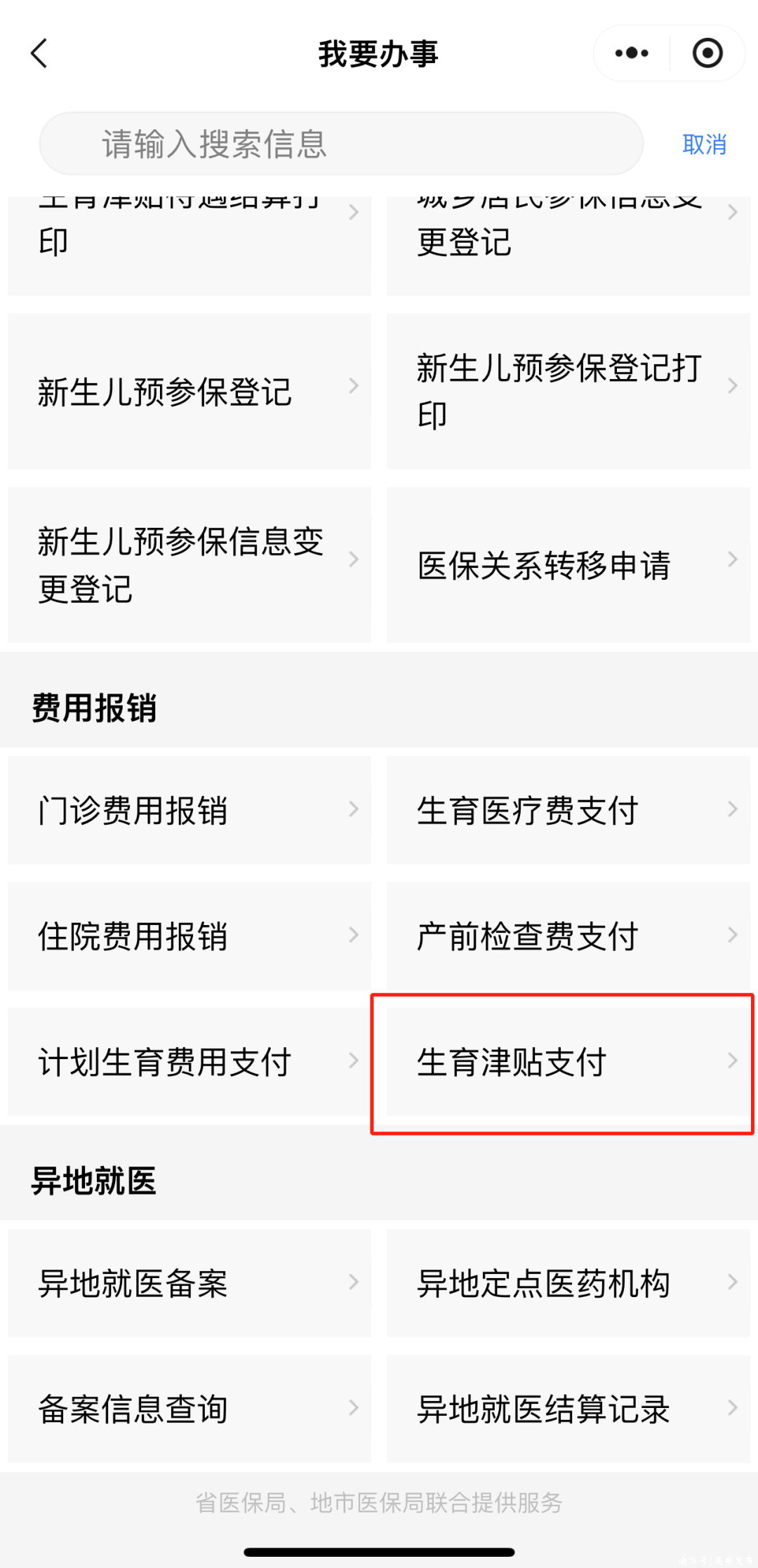 点击首页“我要办事”—查看更多—下滑至费用报销—选择“生育津贴支付”模块提交申请。